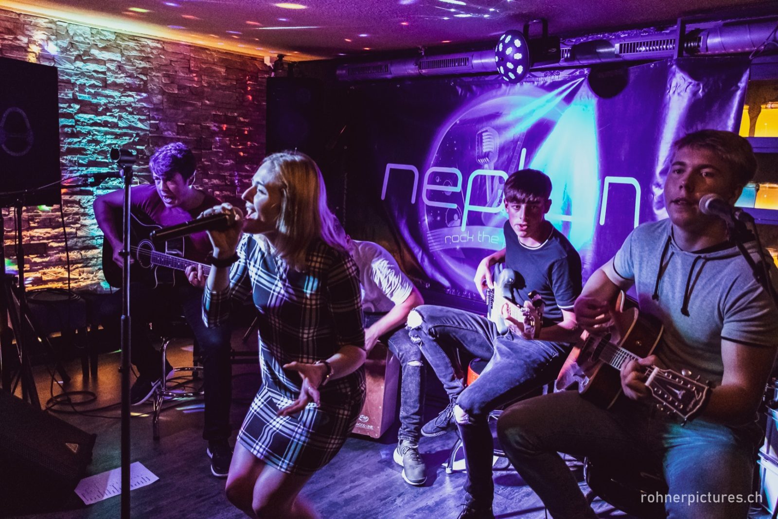 Neptunband sind: Leonie Imhof, Vocals, Fabian Rohner, Lead-Guitar, Elias Schmid, Rhythm-Guitar, David Rohner, E-Bass/Ukulele, Yannik Lenherr, Drums